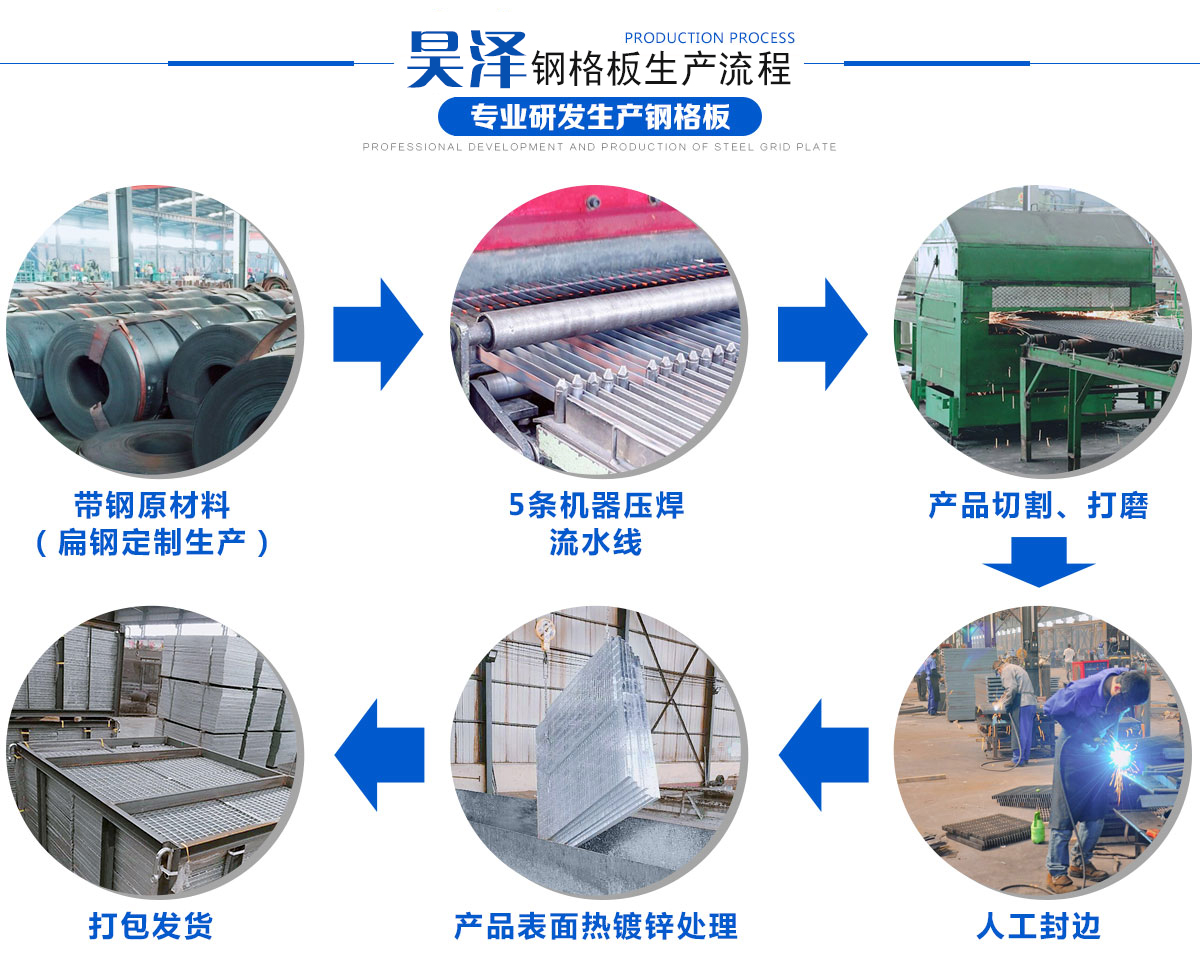 鋼格柵1、熱鍍鋅鋼格柵由負(fù)載扁鋼和橫桿按一定間距經(jīng)緯排列,在高壓電阻焊機(jī)上焊接而成···